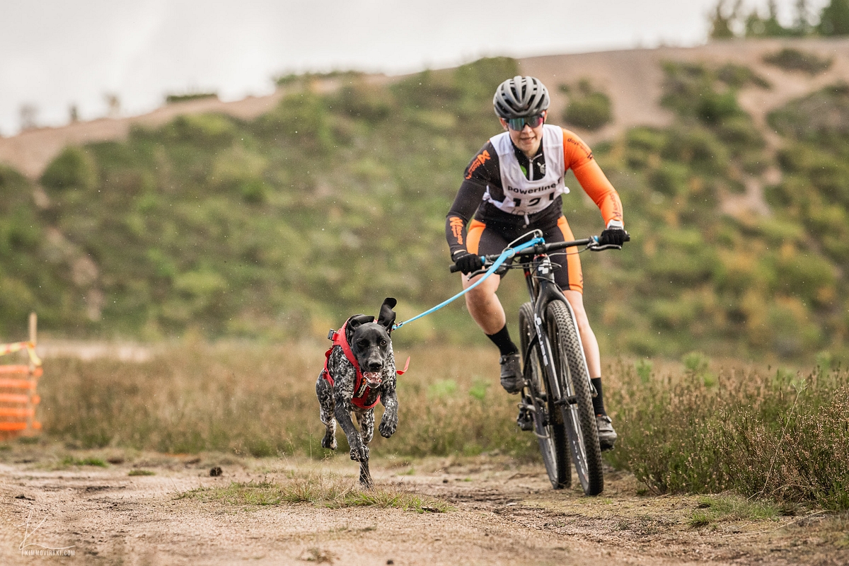 Ripsa Järvi, 28 years from Finland. I have been doing sleddogsport since 2015, when my aunt inspired me to try the sport with her own dogs. I started with the canicross, then I tried the dogscooter with one and two dogs and after that the bikejoring with my own pure gsp Calla. I have competed in bikejoring for five seasons and it is my main sport. My best achievements are two gold medals from Finnish championships and EC 5th place and WC. 12th place.